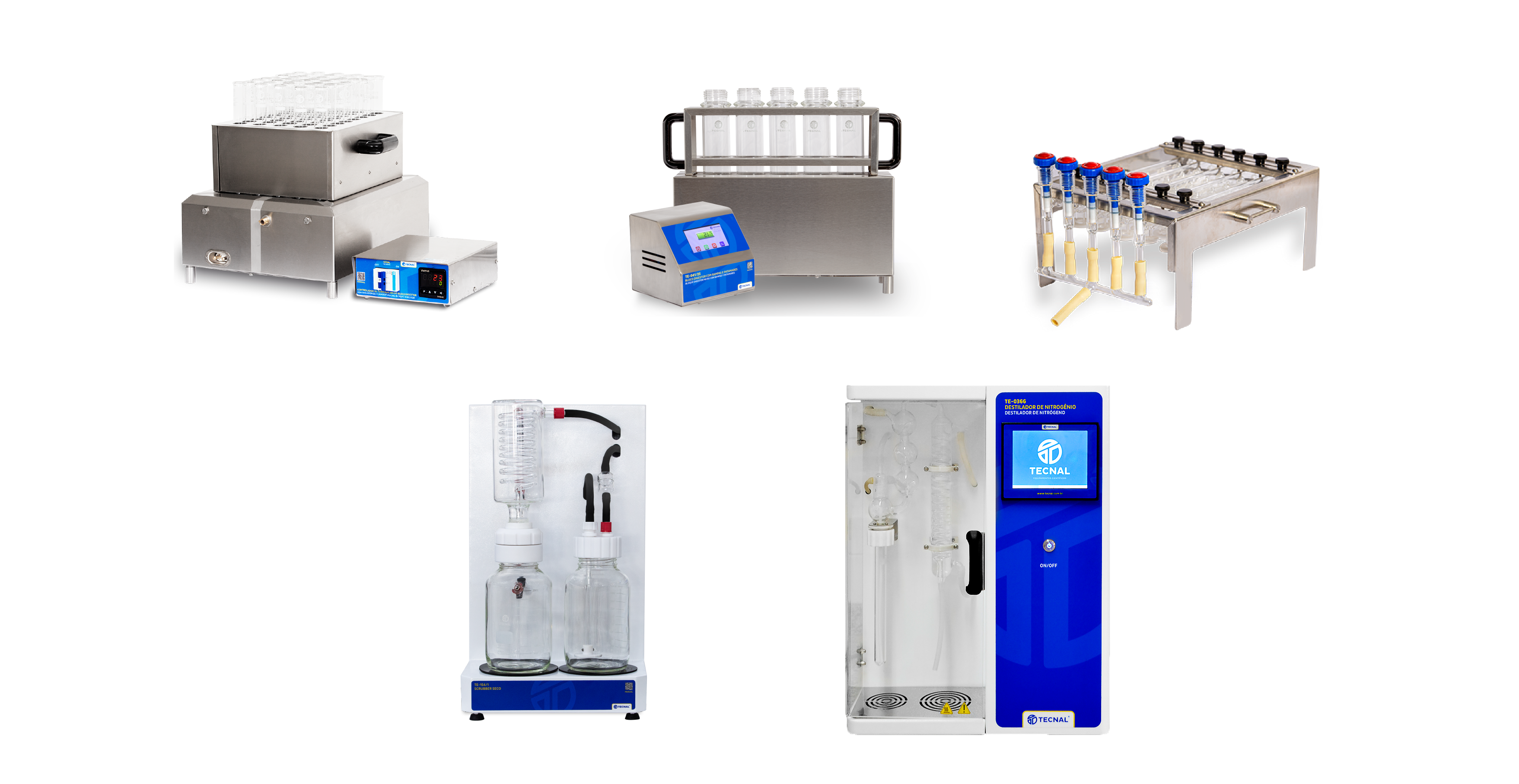Para la destilación, se utilizan Destiladores de nitrógeno como el TE-0364, el modelo de tres pruebas TE-0365/1 o el modelo automático TE-0366.