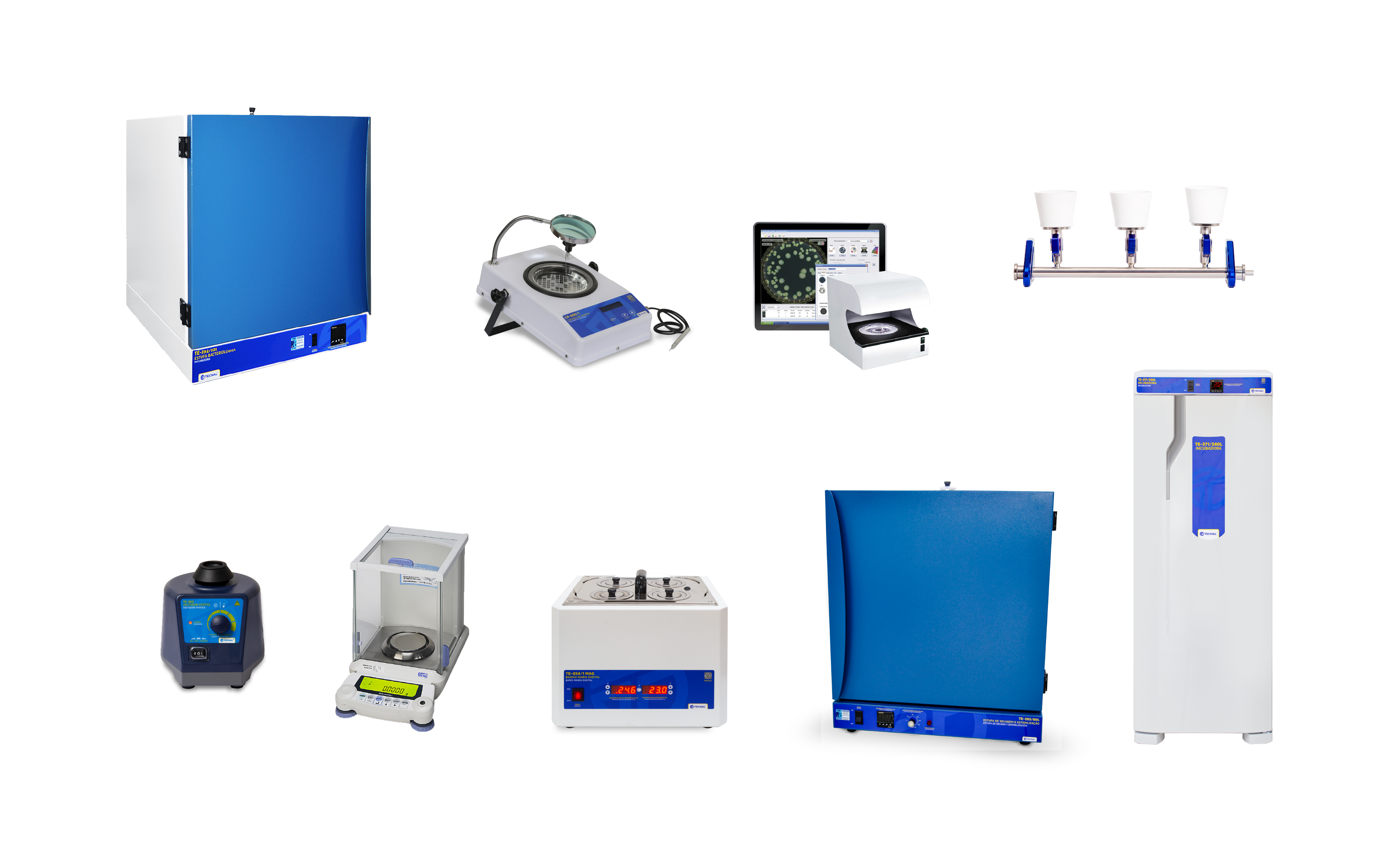 · Outros equipamentos: sistema de filtração, banho-maria, agitador de tubos, balança e estufa de secagem e esterilização.
