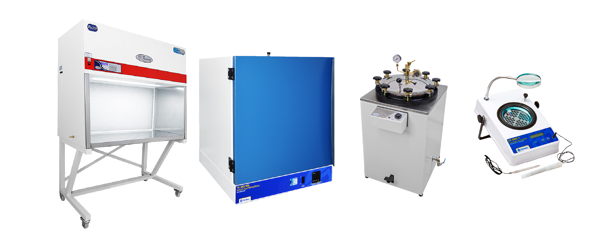 - Coliformes totais e termotolerantes: quantificados por filtração em membrana com o Sistema de Filtração TE-0591/1 e incubação em estufas bacteriológicas TE-392 ou incubadoras TE-371. Em análises microbiológicas podem ser utilizados os contadores de colônias, bancadas de fluxo laminar e autoclaves.