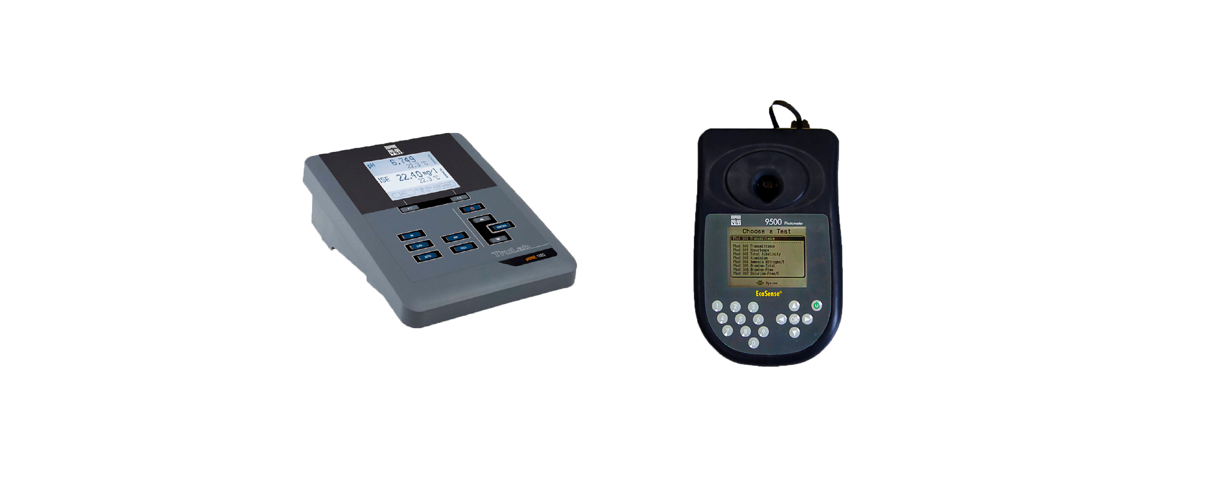 - YSI-FOTOMETRO 9500: alcalinidade, alumínio, amônia, bromo, dureza, cloreto, cromo, manganês, turbidez, oxigênio dissolvido, flúor, hidrazina, peróxido, ferro, magnésio, cobre, níquel, zinco, nitrato, nitrito, molibdênio, fenol, sulfato, sulfeto e potássio.